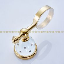 Elegantní držák skleněného dávkovače na tekuté mýdlo je vyroben ze slitiny zinku ve zlato-bílém provedení s osázenými zirkony, balení obsahuje držák dávkovače mýdla a skleněný dávkovač